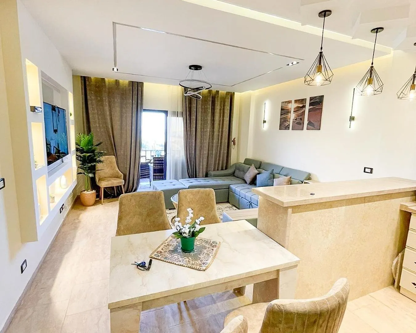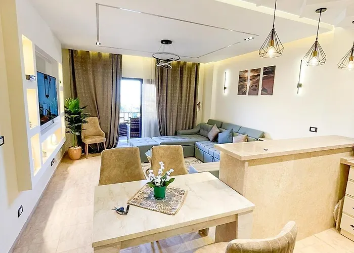 Turtles Paradise Apartment se află la o plimbare de aproximativ 25 de minute de Baron Beach Resort. El Dahar se află la la 2.5 km de la de apartamentul de 73 m^2.
